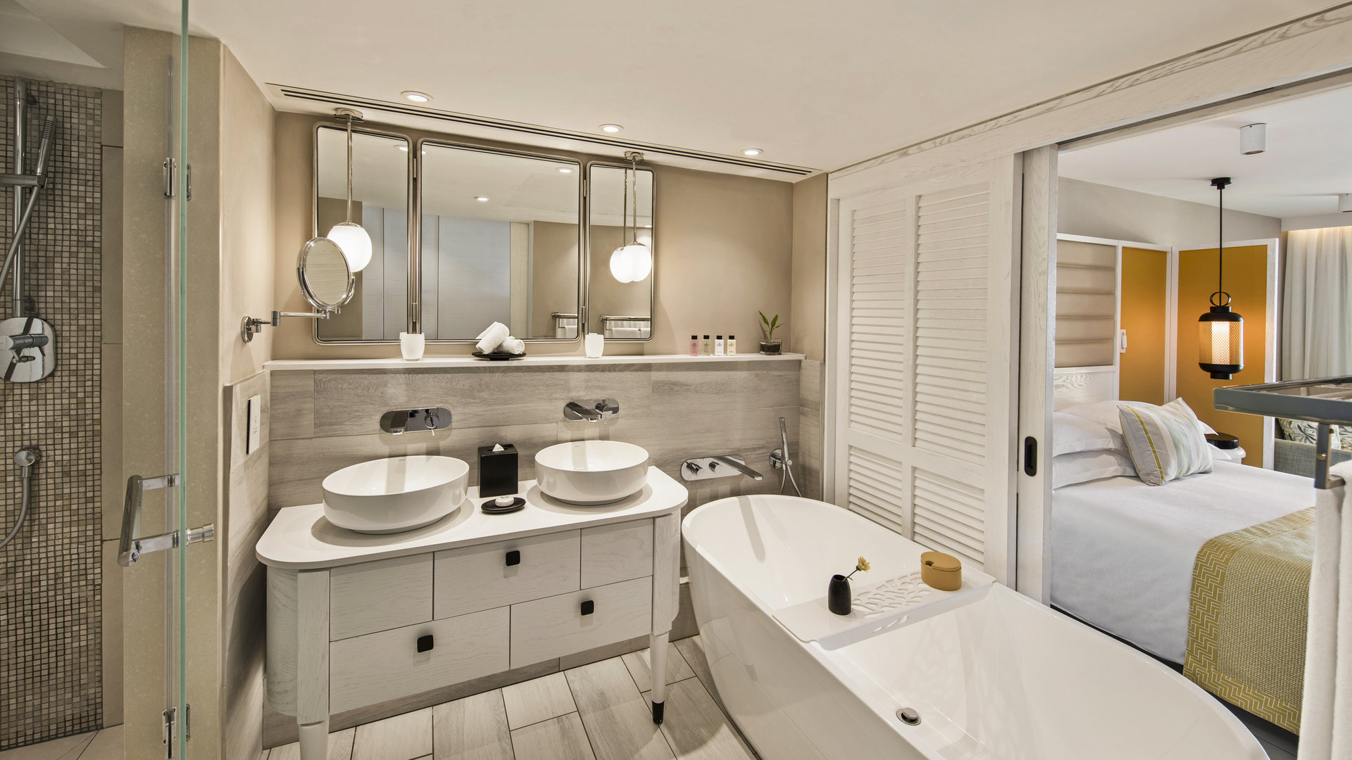 et baignoire, toilettes et vasque. Des chambres Prestige communicantes sont aussi