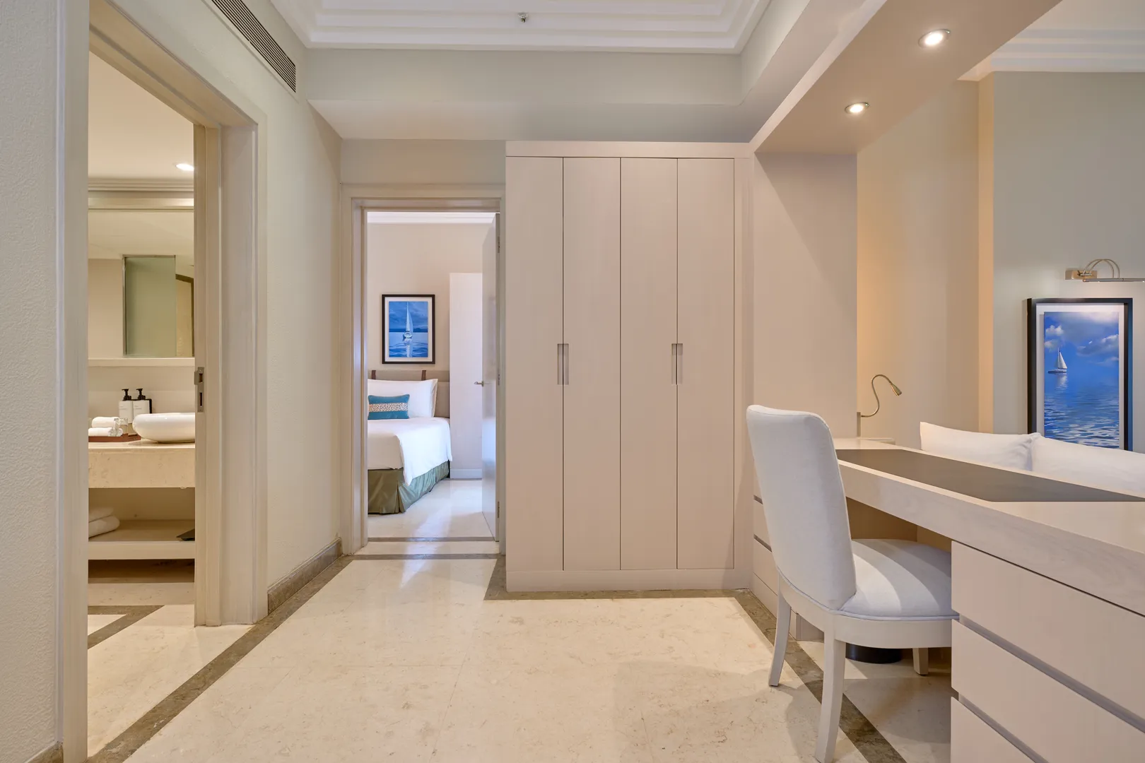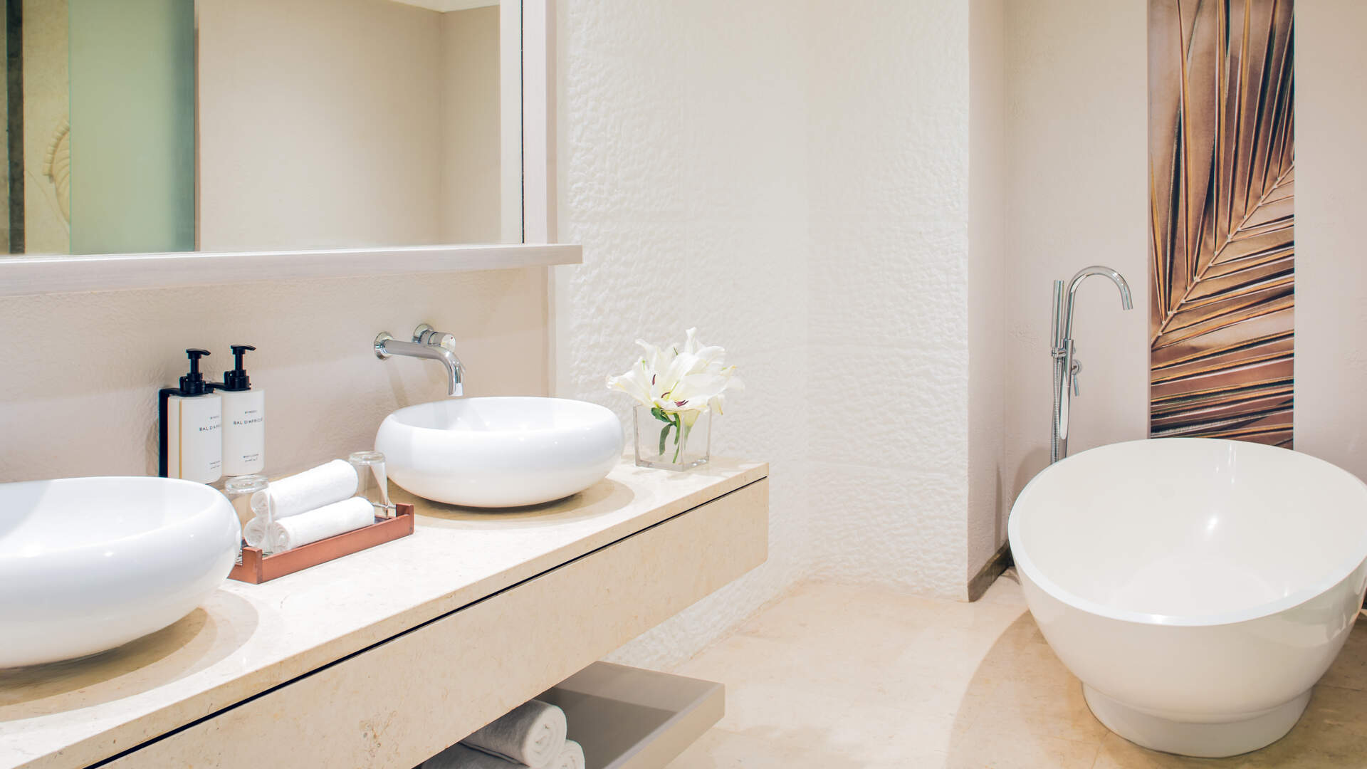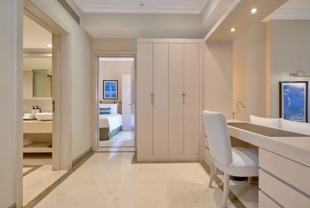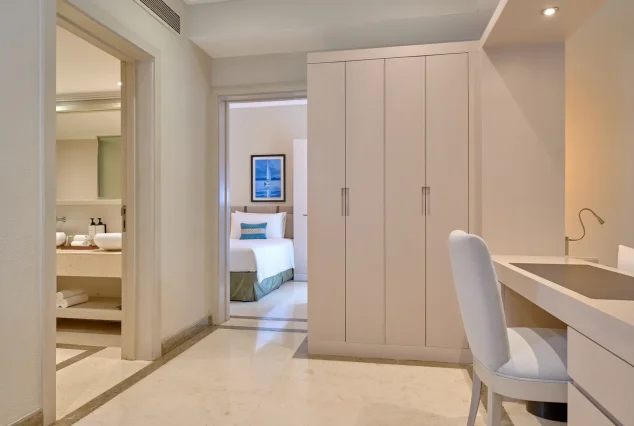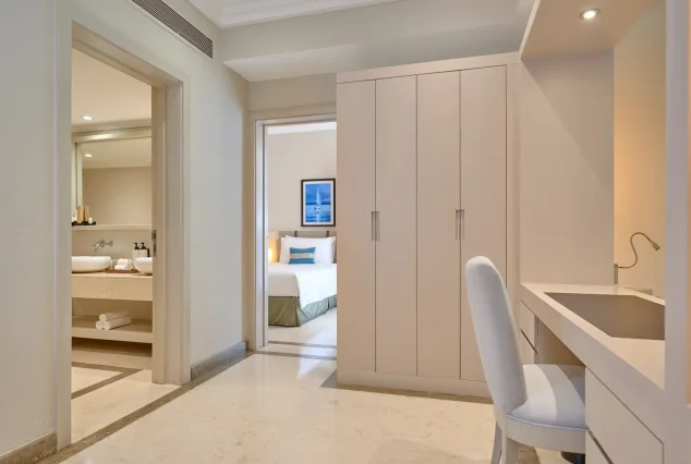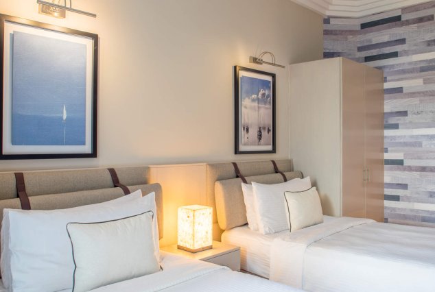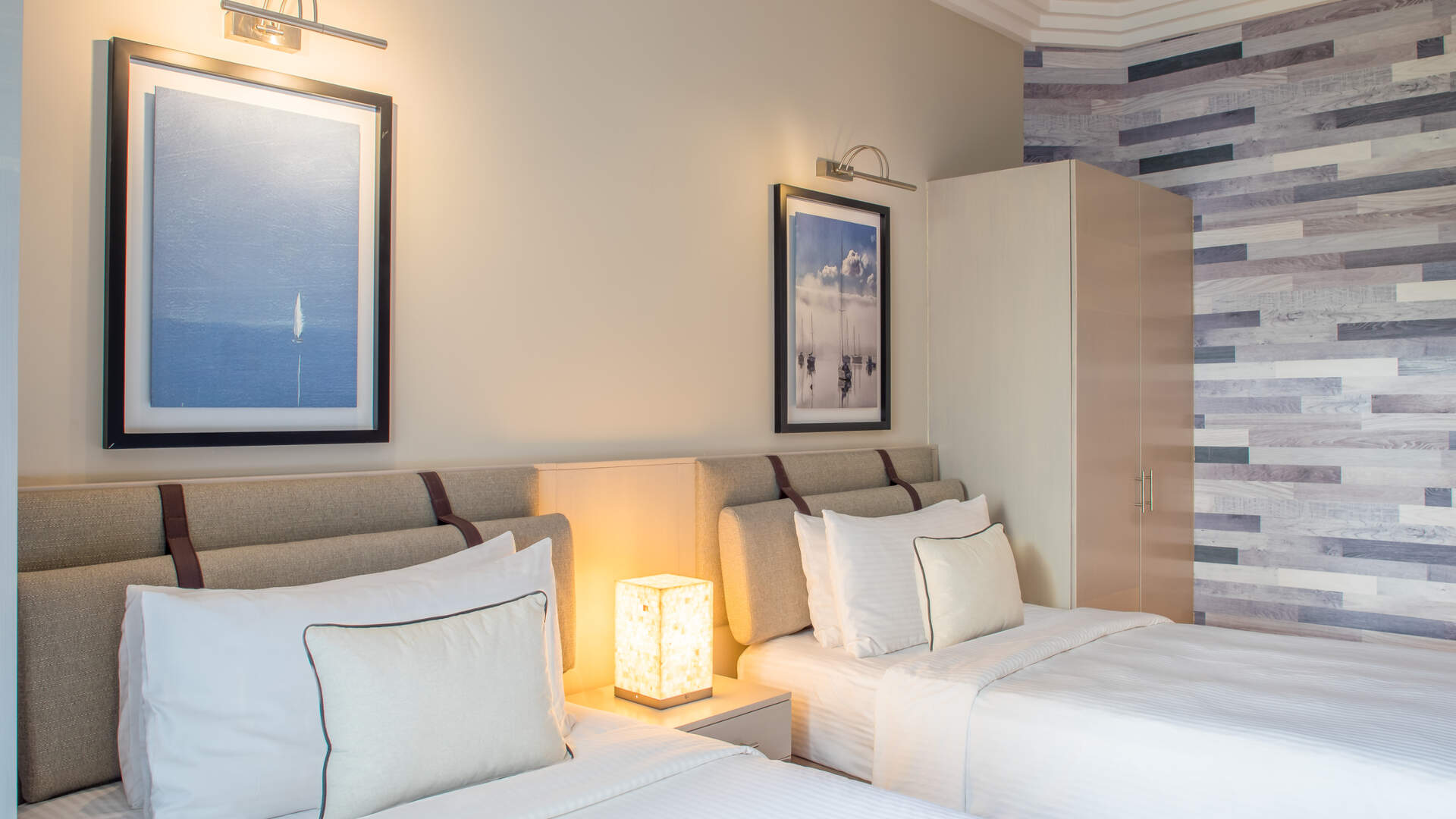 Endroit plus spacieux de 72 mètres carrés qui se compose d’une chambre principale avec un grand lit et d’une deuxième chambre à coucher avec deux lits simples; offrant intimité et paix à tous les membres de la famille. La salle de bain de la chambre famille comporte un wc, une double vasque, une baignoire en pierre et une douche pour une détente ultime.