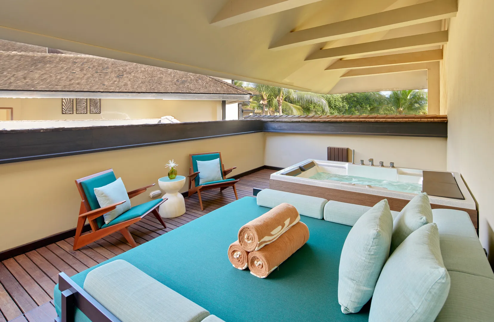 Un havre de paix pour les couples en quête de romantisme. La chambre de 56 mètre carrés a également une terrasse de 33 mètre carrés équipée d' un bain a remous et faisant face à l’océan. Meublées dans un style contemporain chic et luxueux, les chambres sont pourvues d’une spacieuse salle de bain avec double vasque, baignoire profonde en pierre et d’une douche. Elles sont situées au deuxième étage de l’hôtel, chacune offrant des vues différentes.
